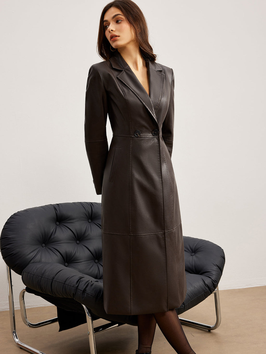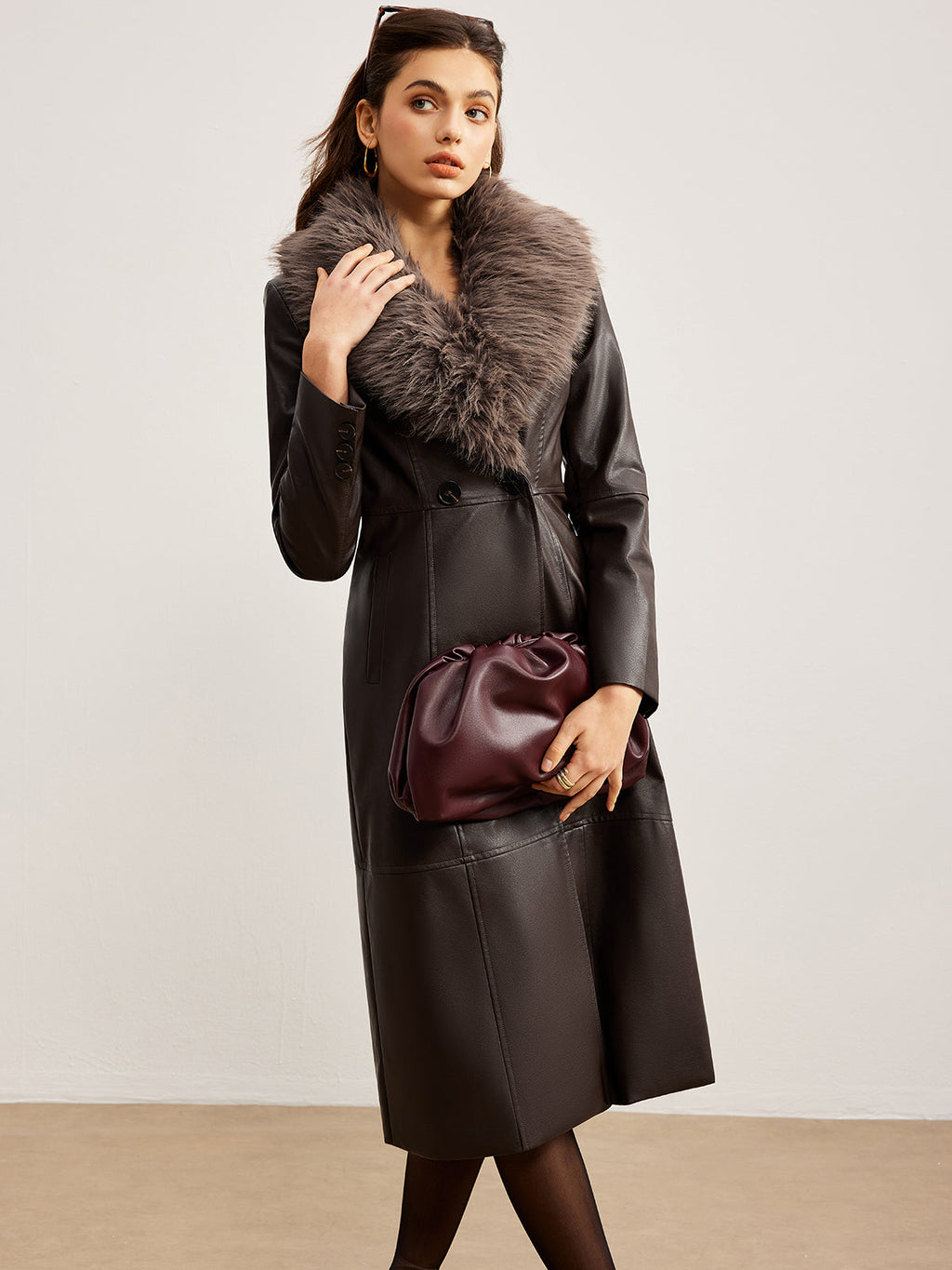 Detachable Fuzzy Collar Faux Leather Long Jacket
